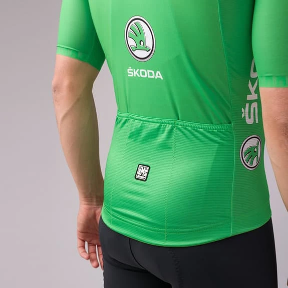 The 2022 Tour de France green jersey, which pays tribute to the race’s best sprinter, is made from 100% recycled PET fabrics and waste yarns. The jersey is characterised by the silicone arm band in the shape of the Arc de Triomphe, the tone-on-tone piping and the stitched silicone patch bearing the famous Henri Desgrange initials. Its construction has been made by reproducing exactly the same cut, the same materials and the same piping as those used by the leaders of the Tour de France.