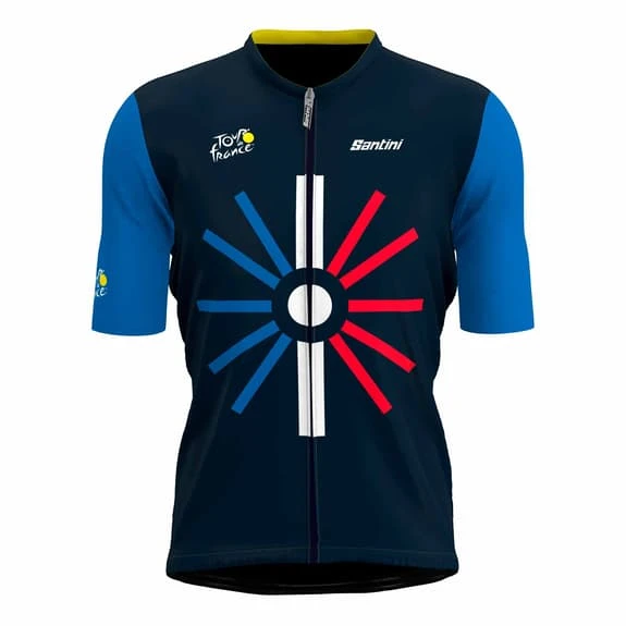 The Tour de France 2023 Trionfo short sleeve jersey, made by Santini, has a classic cut and is highly breathable for excellent comfort on your cycling outings. This jersey is made from a combination of highly ventilated micro-mesh fabrics and high-performance hemless sleeves.