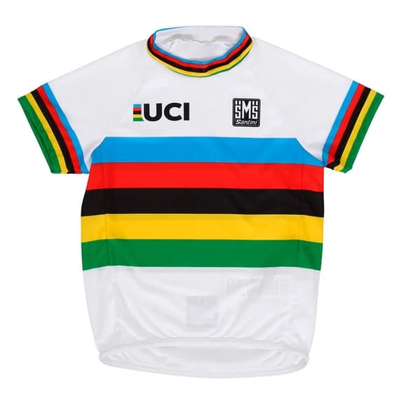 The Santini UCI World Champion baby jersey is made with lightweight and technical fabric with World Champion design.